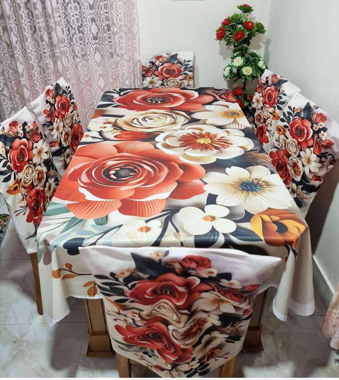 🌺ডিজিট্যাল থ্রিডি প্রিন্টের নতুন সব ডিজাইনের প্রিমিয়াম কোয়ালিটির টেবিল ক্লথ এবং ৬ পিছ চেয়ার কাভার থাকবে।🌺