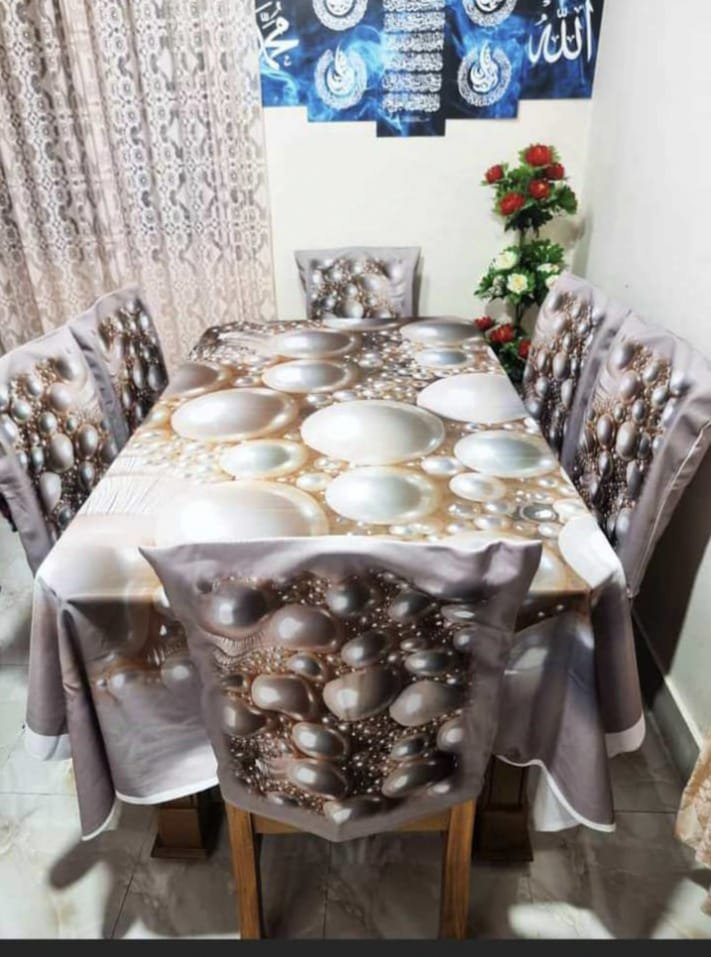 🌺ডিজিট্যাল থ্রিডি প্রিন্টের নতুন সব ডিজাইনের প্রিমিয়াম কোয়ালিটির টেবিল ক্লথ এবং ৬ পিছ চেয়ার কাভার থাকবে।🌺