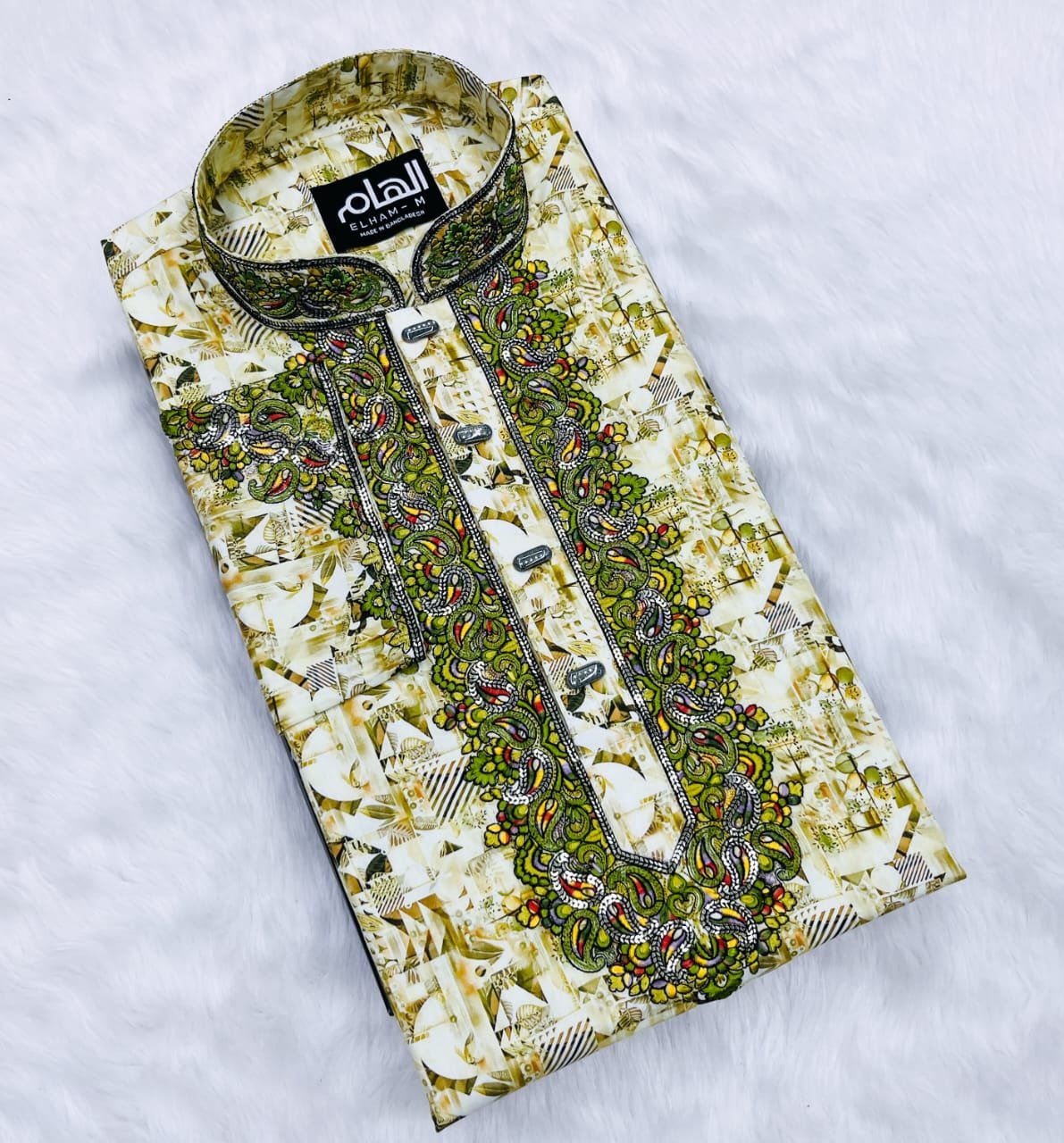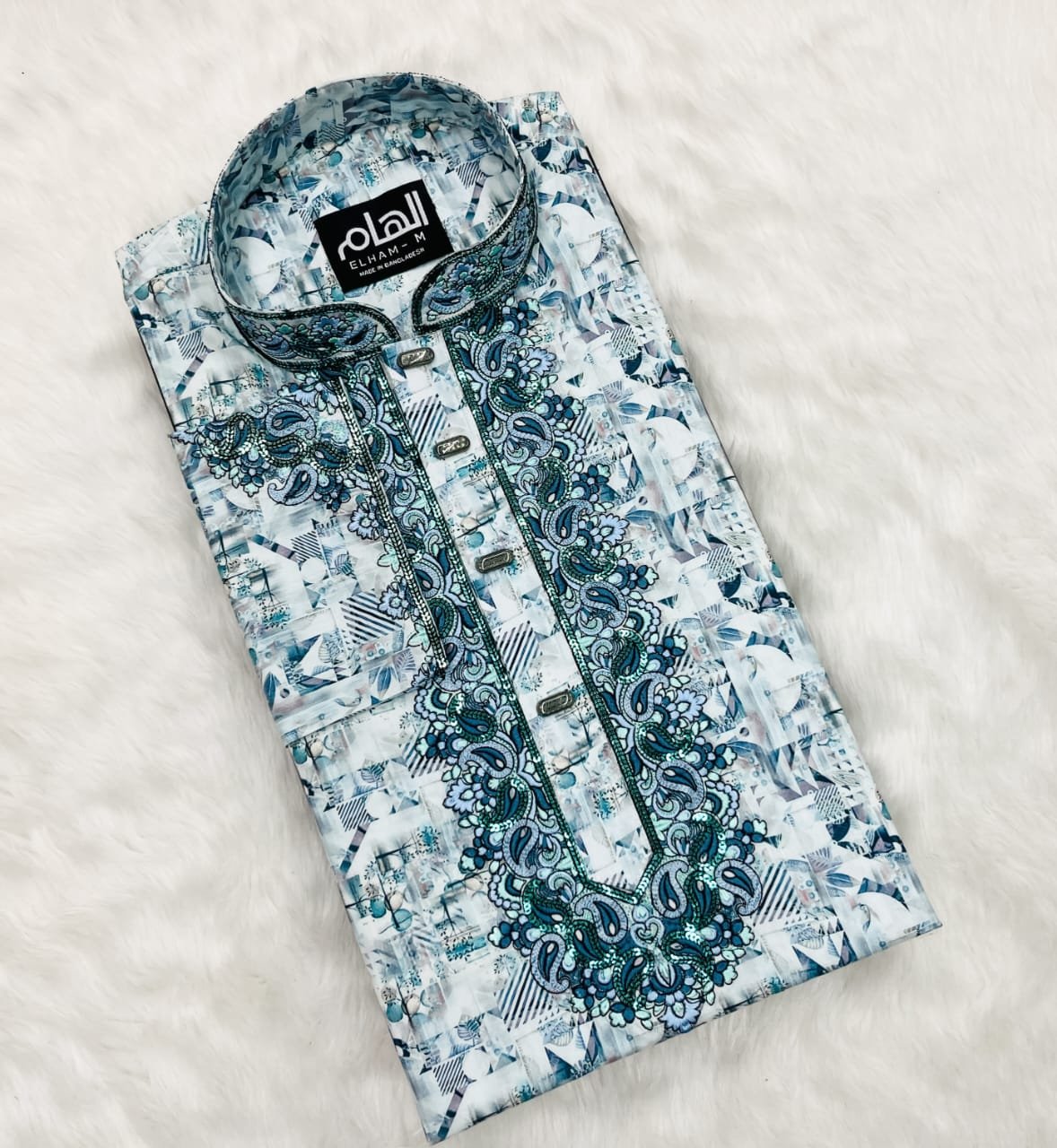 ডিজিটাল প্রিন্টেড সিকুয়েন্স এমব্রয়ডারি পাঞ্জাবী