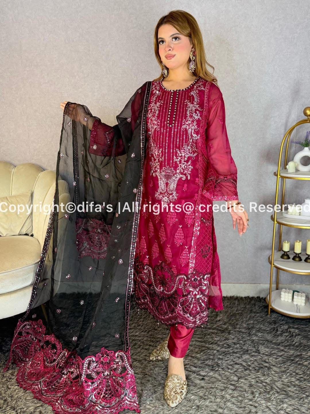 🌸 Pakistani Inspired Dress – Sadabahar Organja Collection 🌸