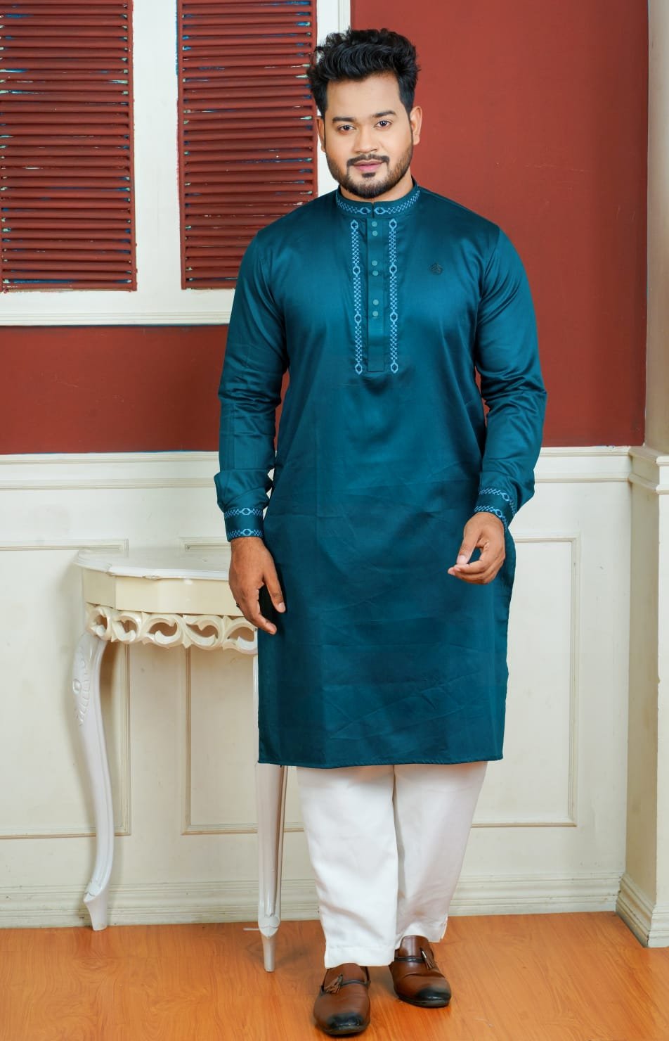 🧵 যে কোনো উৎসব বা ফরমাল অনুষ্ঠানের জন্য আদর্শ পছন্দ। প্রিমিয়াম কোয়ালিটি ও নিখুঁত এমব্রয়ডারির ছোঁয়ায় তৈরি এই পাঞ্জাবী আপনার স্টাইলকে দেবে নতুন মাত্রা।