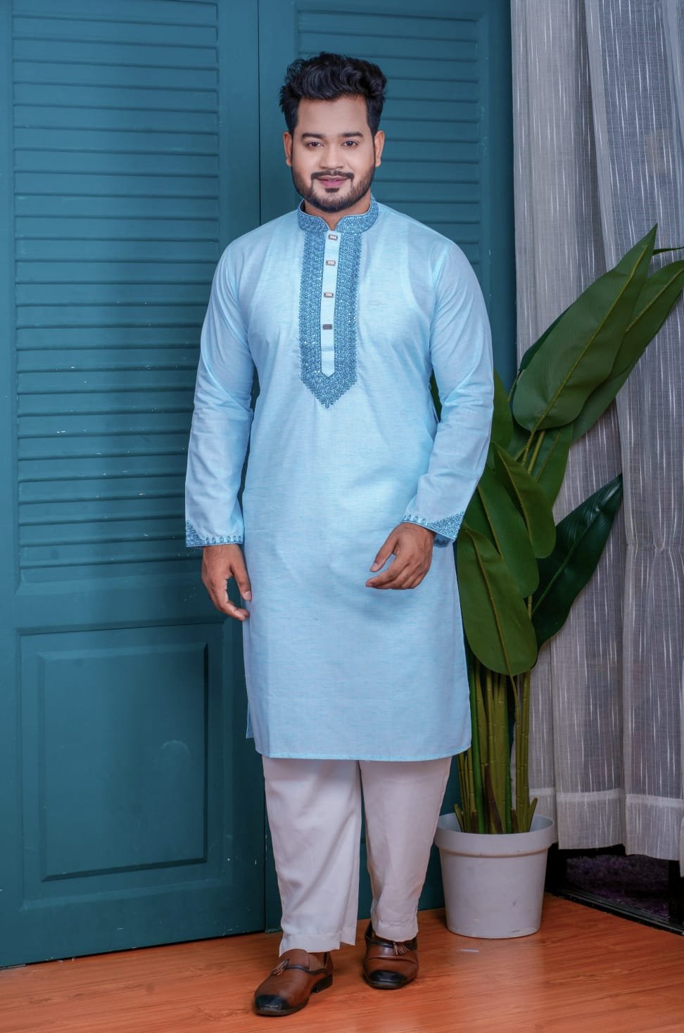 স্টাইলিশ লুক এবং আরামদায়ক ফিনিশিংয়ের নিখুঁত মিশ্রণে তৈরি এই পাঞ্জাবিটি আপনার পোশাক সংগ্রহে আনবে এক্সক্লুসিভ এলিগ্যান্স।