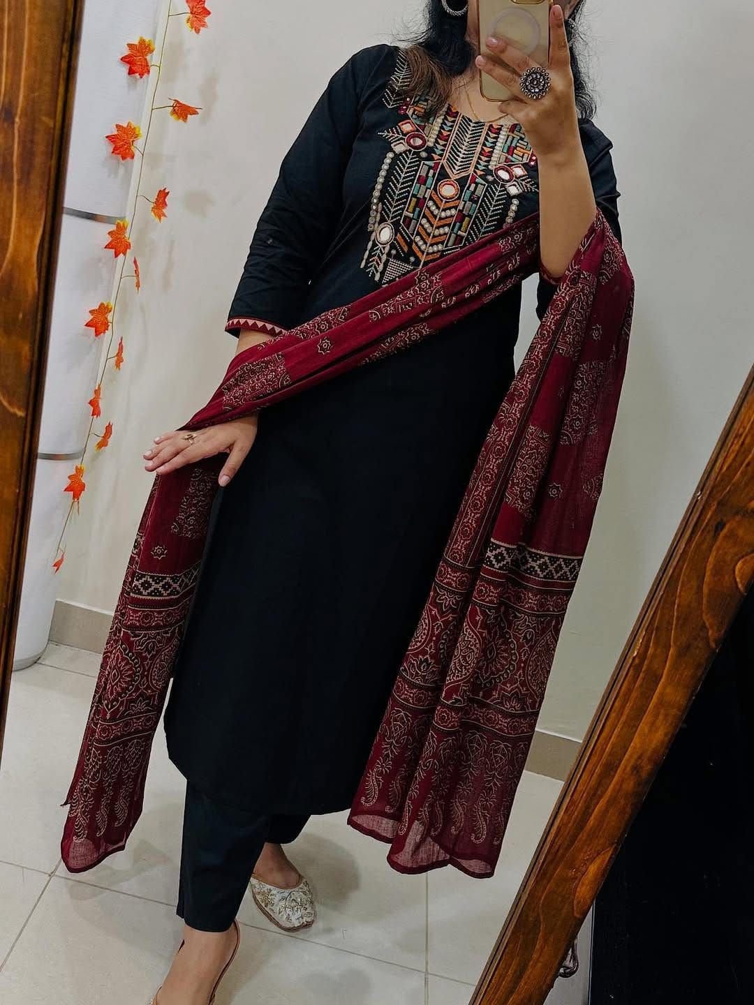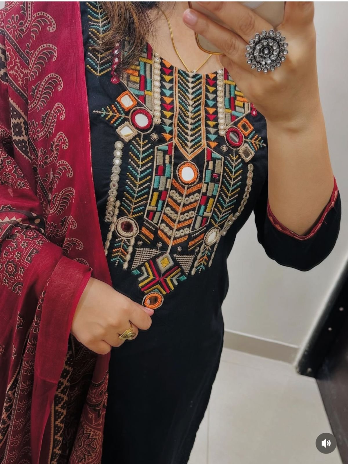 👗 Body: Pure Linen with Dolar Work & 4 Suta Embroidery