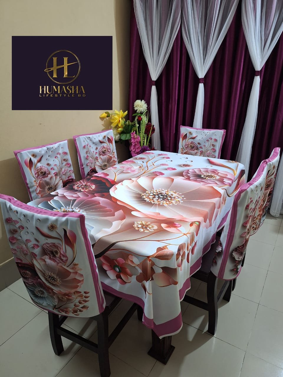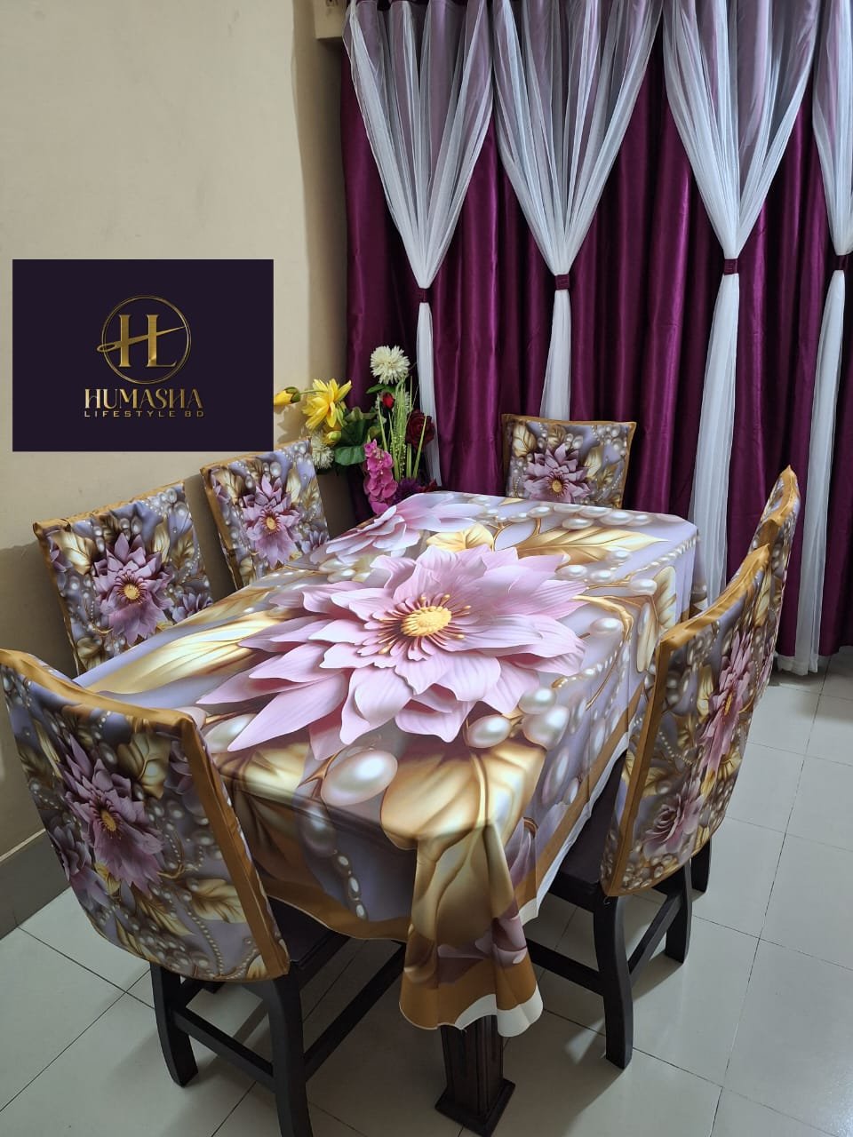 🌺ডিজিট্যাল থ্রিডি প্রিন্টের নতুন সব ডিজাইনের প্রিমিয়াম কোয়ালিটির টেবিল ক্লথ এবং ৬ পিছ চেয়ার কাভার থাকবে।🌺