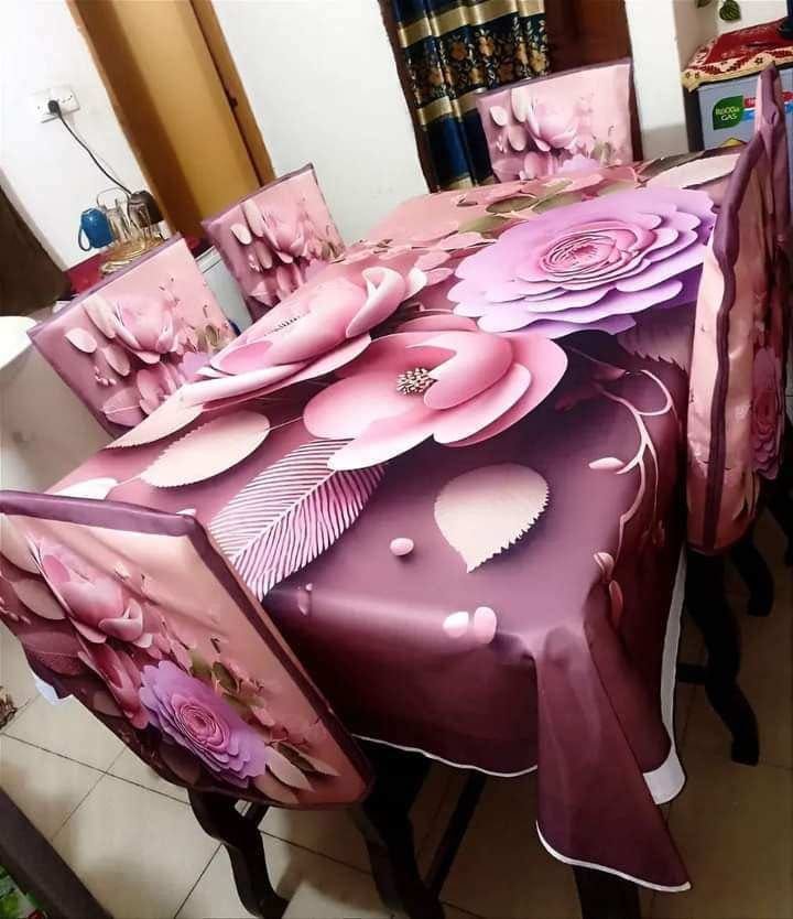 🌺ডিজিট্যাল থ্রিডি প্রিন্টের নতুন সব ডিজাইনের প্রিমিয়াম কোয়ালিটির টেবিল ক্লথ এবং ৬ পিছ চেয়ার কাভার থাকবে।🌺