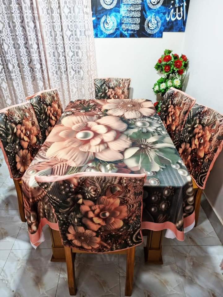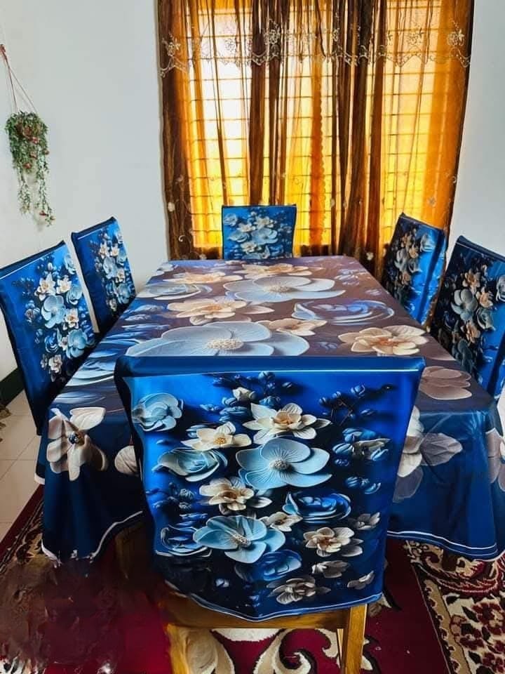 🌺ডিজিট্যাল থ্রিডি প্রিন্টের নতুন সব ডিজাইনের প্রিমিয়াম কোয়ালিটির টেবিল ক্লথ এবং ৬ পিছ চেয়ার কাভার থাকবে।🌺