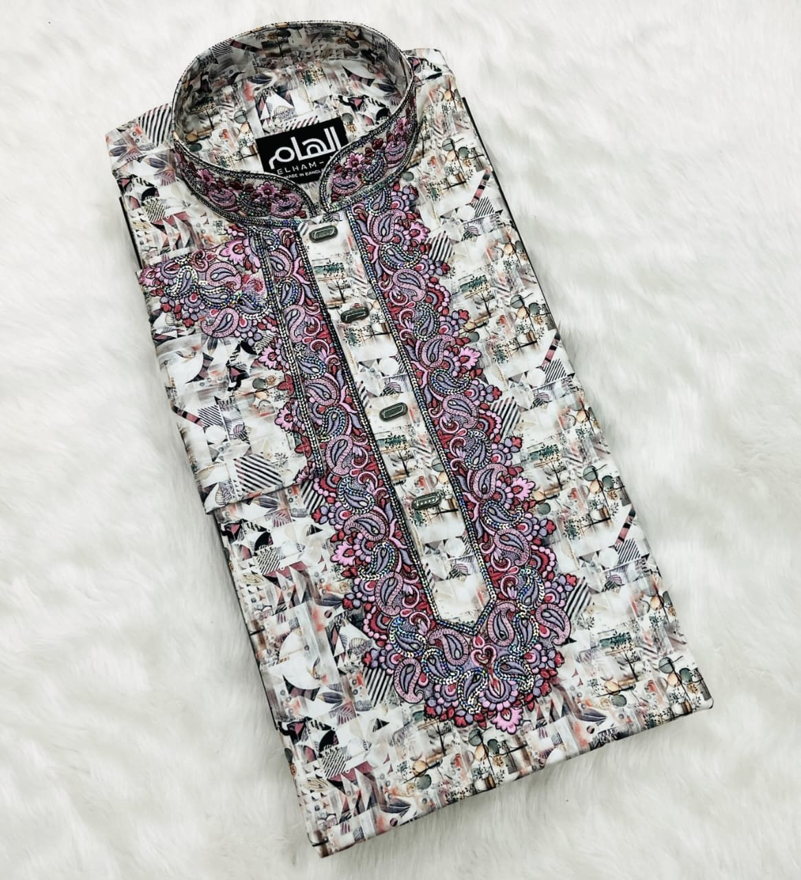 ডিজিটাল প্রিন্টেড সিকুয়েন্স এমব্রয়ডারি পাঞ্জাবী