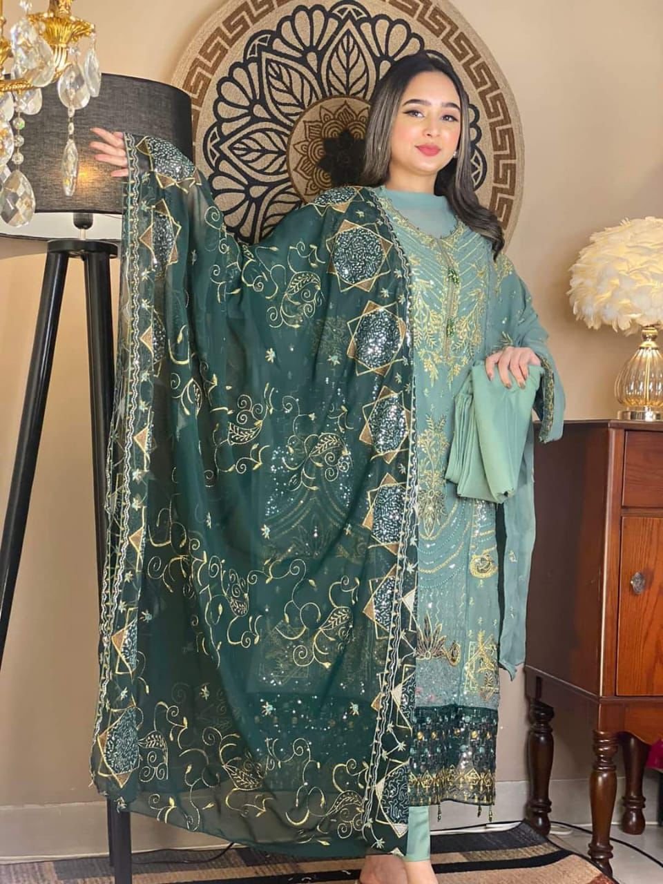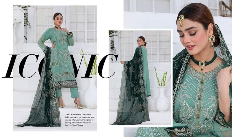 Body: জর্জেট ফ্যাব্রিক, সুন্দর এম্ব্রয়ডারি সিকোয়েন্স ও নেক ওয়ার্ক