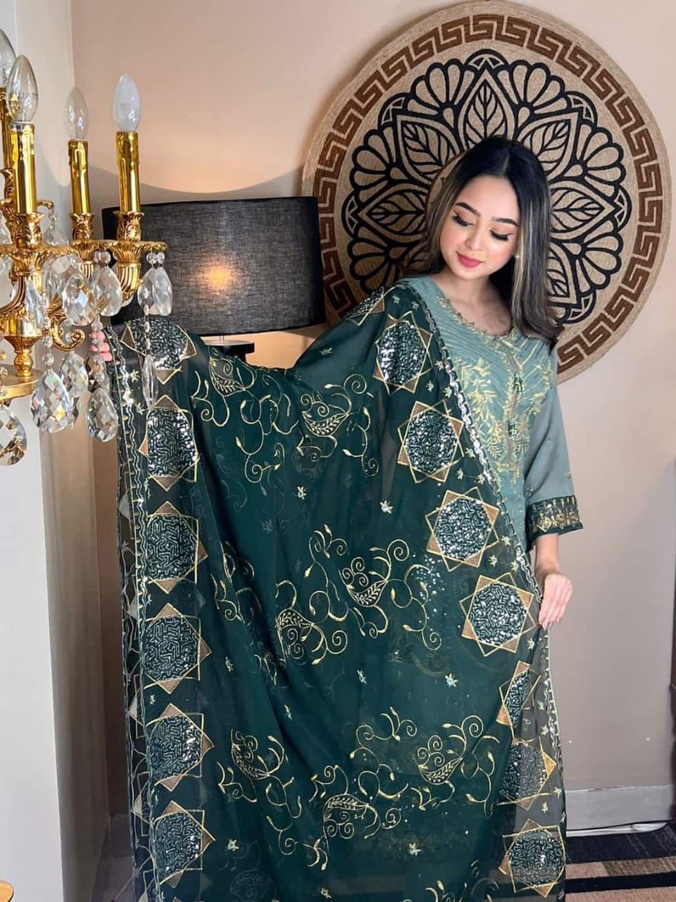Orna/Dupatta: জর্জেট ফ্যাব্রিক, এম্ব্রয়ডারি সিকোয়েন্স ওয়ার্ক