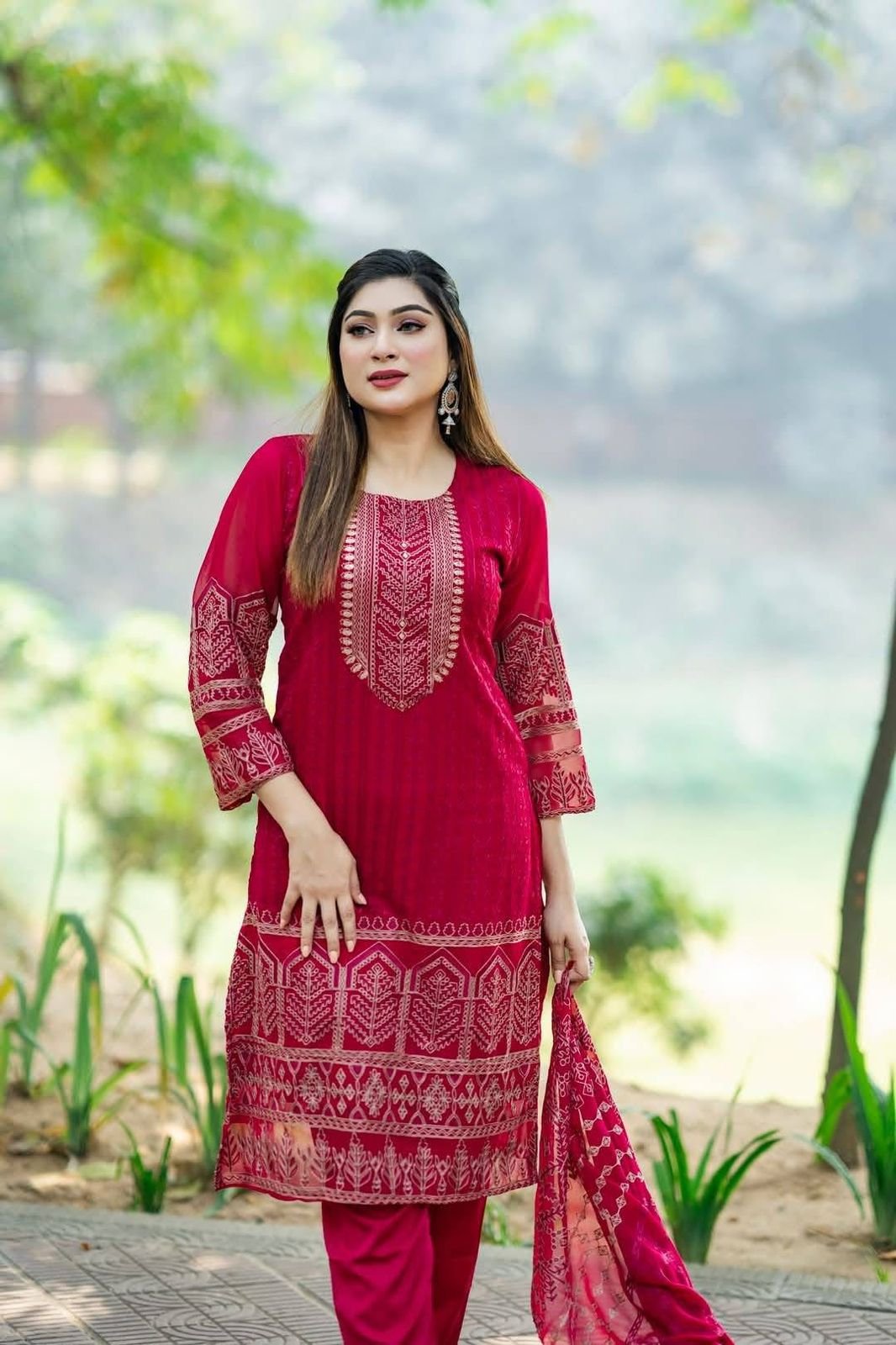 Orna/Dupatta: নরম জর্জেট ফ্যাব্রিক, হেভি এমব্রয়ডারি ওয়ার্ক