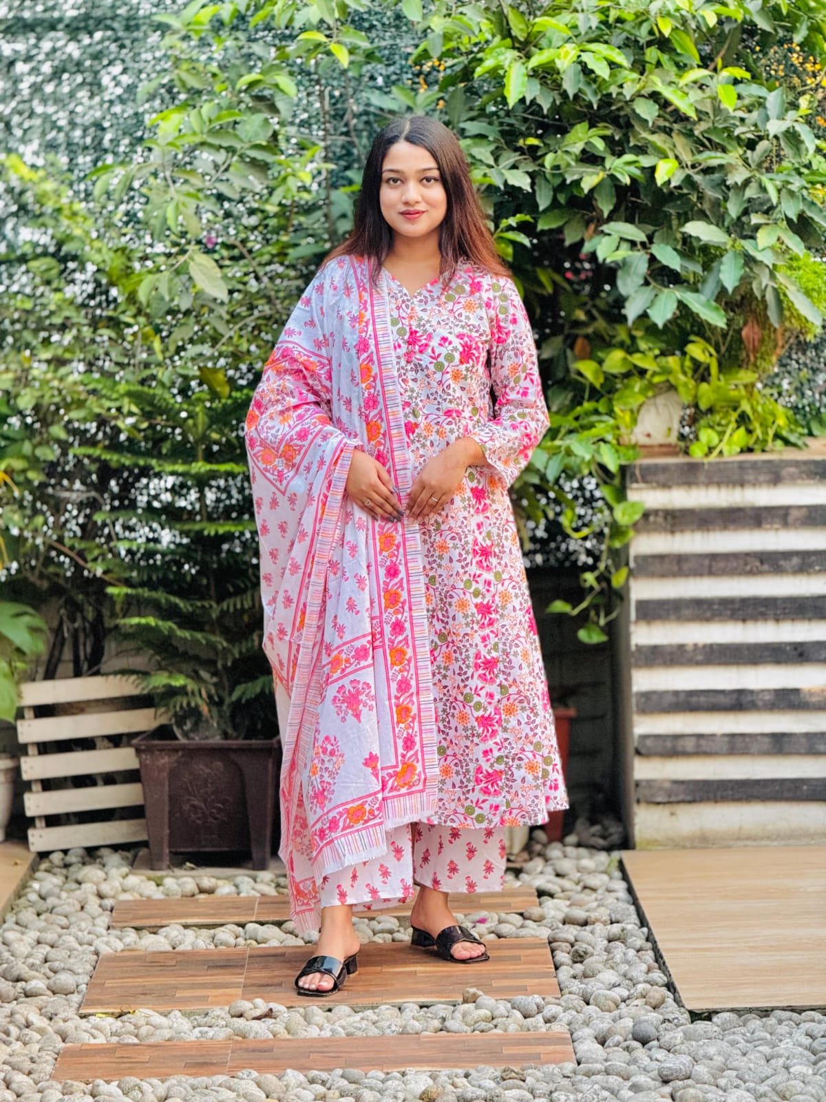 Elevate your style with this Elegant Cotton Gown Dress (3-Piece Set) — the perfect mix of comfort, beauty, and quality 🌸