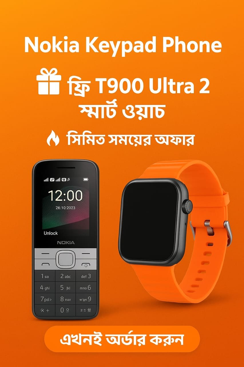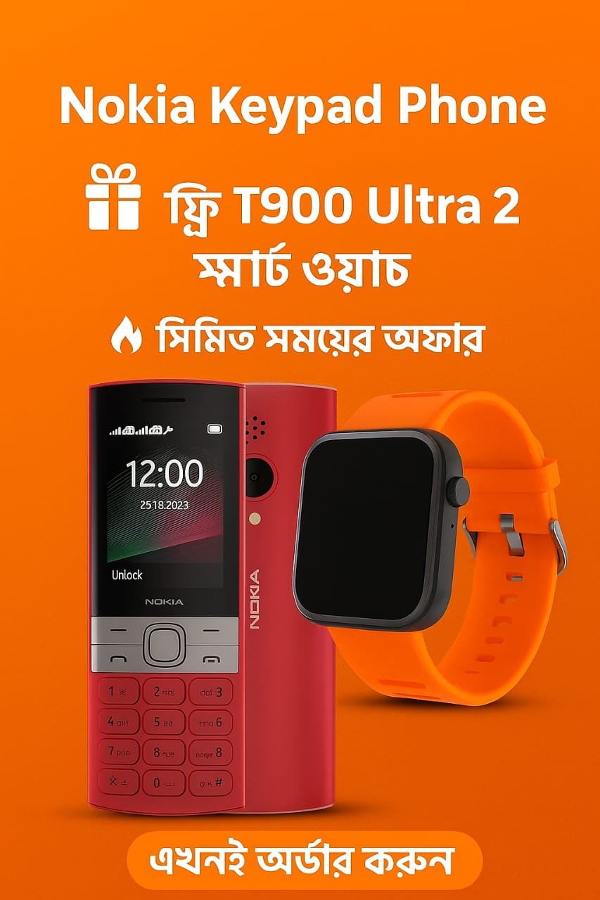 👉 জনপ্রিয় Nokia 150 Dual SIM Phone কিনলেই পাচ্ছেন একেবারে ফ্রি T900 Ultra 2 Smart Watch ⌚