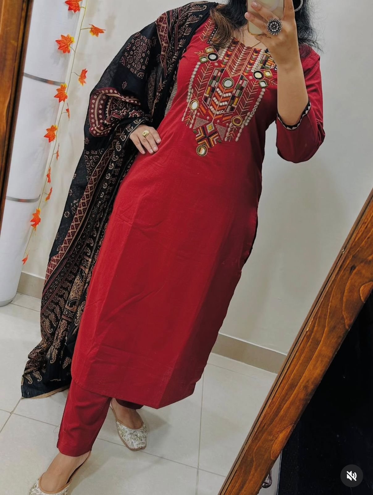 👗 Body: Pure Linen with Dolar Work & 4 Suta Embroidery